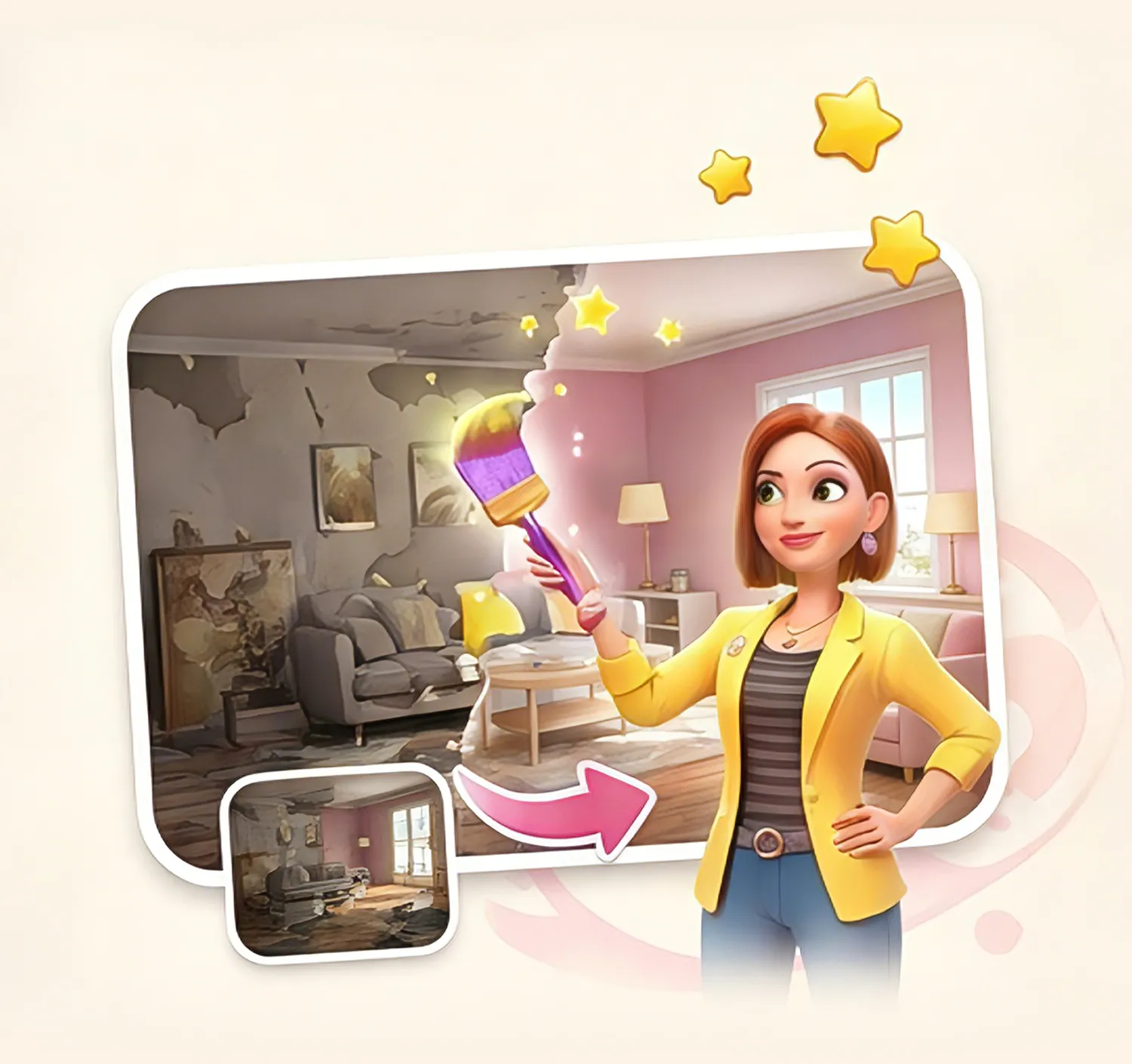 Here, every match is more than just a score — it's the key to building your dream home. Earn stars by clearing levels to unlock a vast collection of furniture and decorations. From wall colors to door and window styles, transform an outdated space into a home that's uniquely yours.